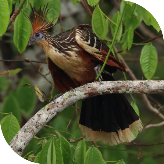 Our expeditions are carefully planned to maximize sightings in different habitats. We navigate through streams where the Musician Wren echoes its melodic songs, explore river islands inhabited by colonies of Green-winged Trumpeters, and enter secret trails where the rare Bare-necked Fruitcrow can be observed in its natural environment.