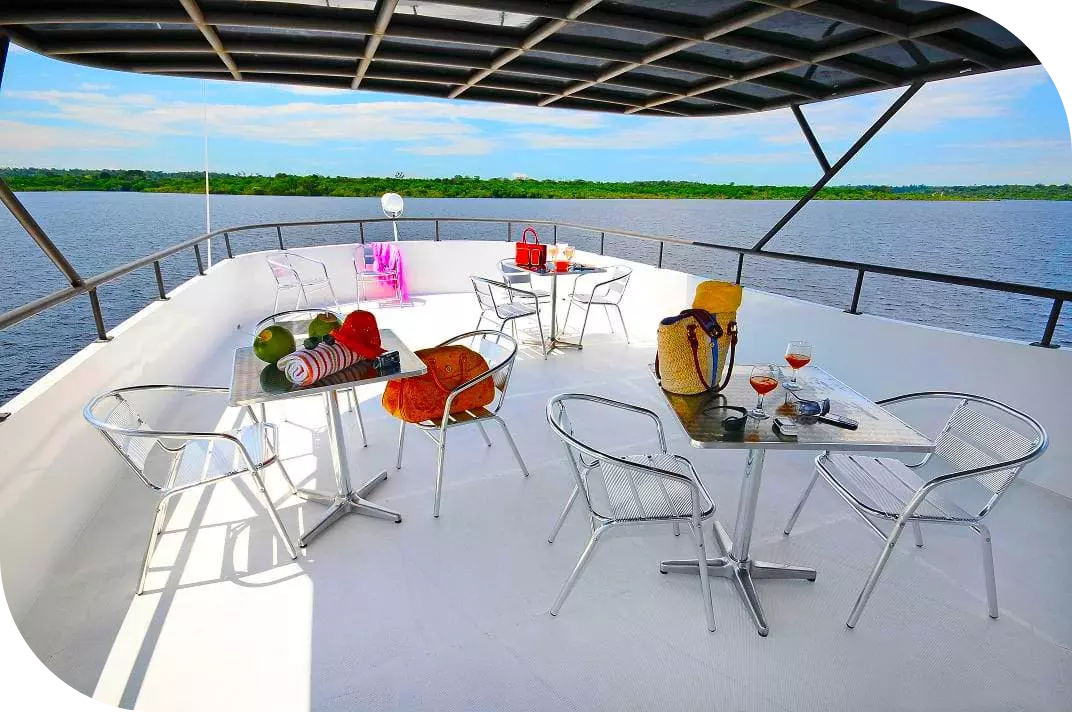 The Anna Clara boat represents the most modern in vessels specialized for Amazon ecotourism. Designed specifically for bird observation, it combines hotel comfort with scientific functionality, offering an ideal platform to explore Amazonian rivers without sacrificing well-being and convenience.