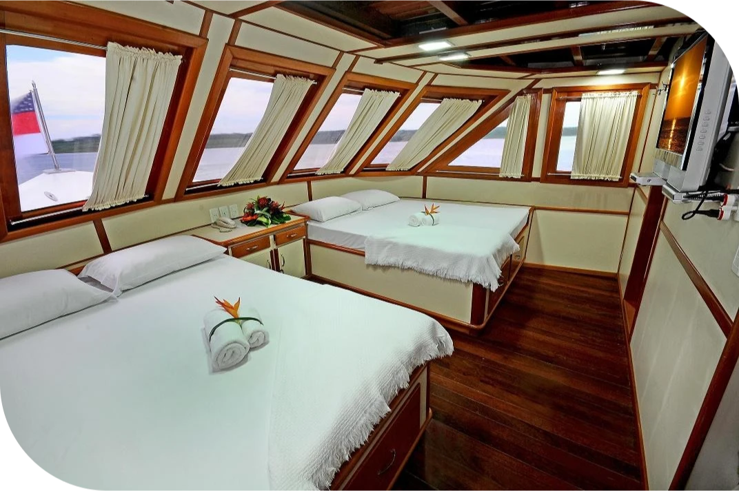 The Anna Clara boat represents the most modern in vessels specialized for Amazon ecotourism. Designed specifically for bird observation, it combines hotel comfort with scientific functionality, offering an ideal platform to explore Amazonian rivers without sacrificing well-being and convenience.